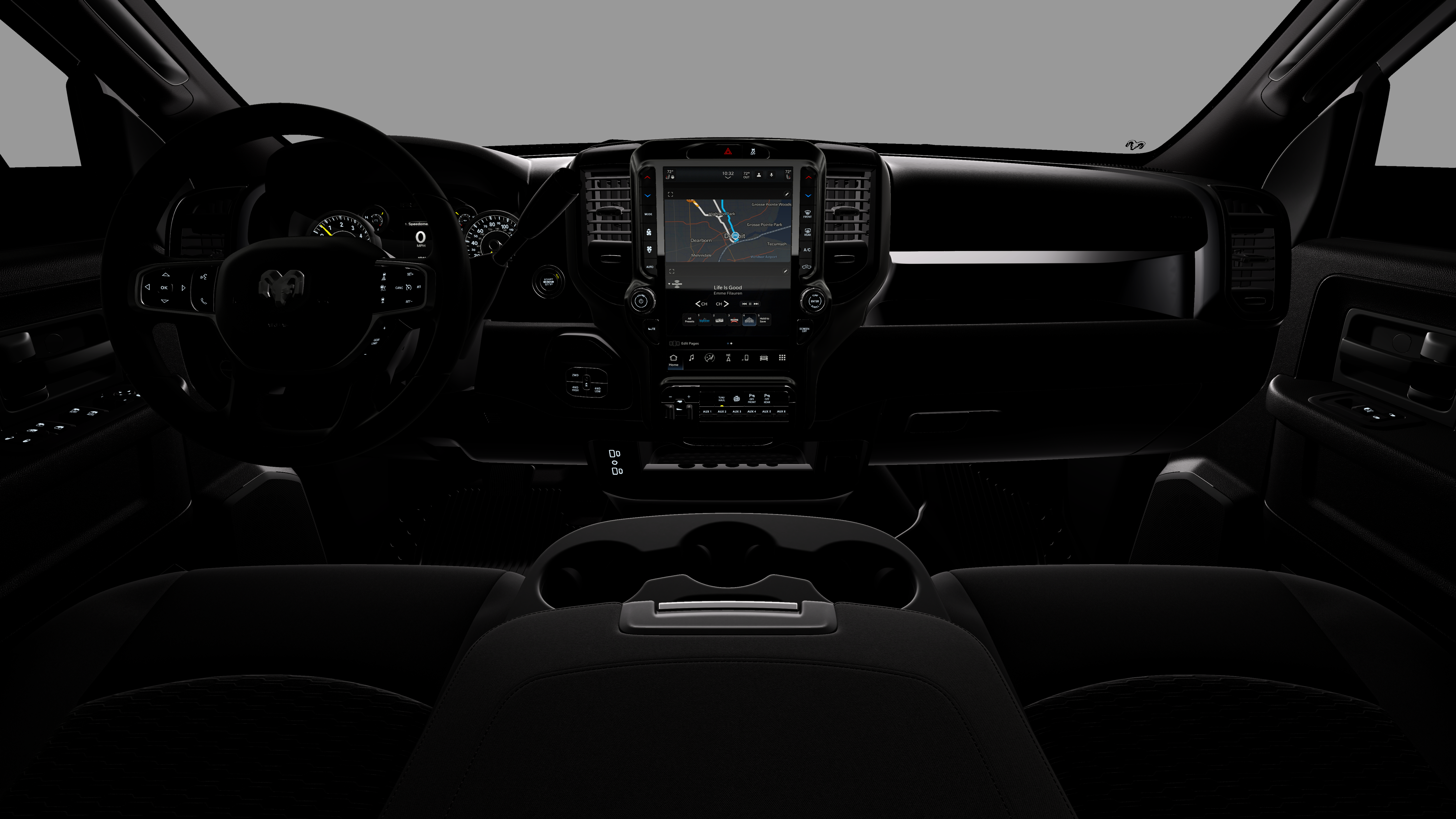 - Radio w/Seek-Scan, Clock, Speed Compensated Volume Control, Aux Audio Input Jack, Voice Activation, Radio Data System and Uconnect External Memory Control