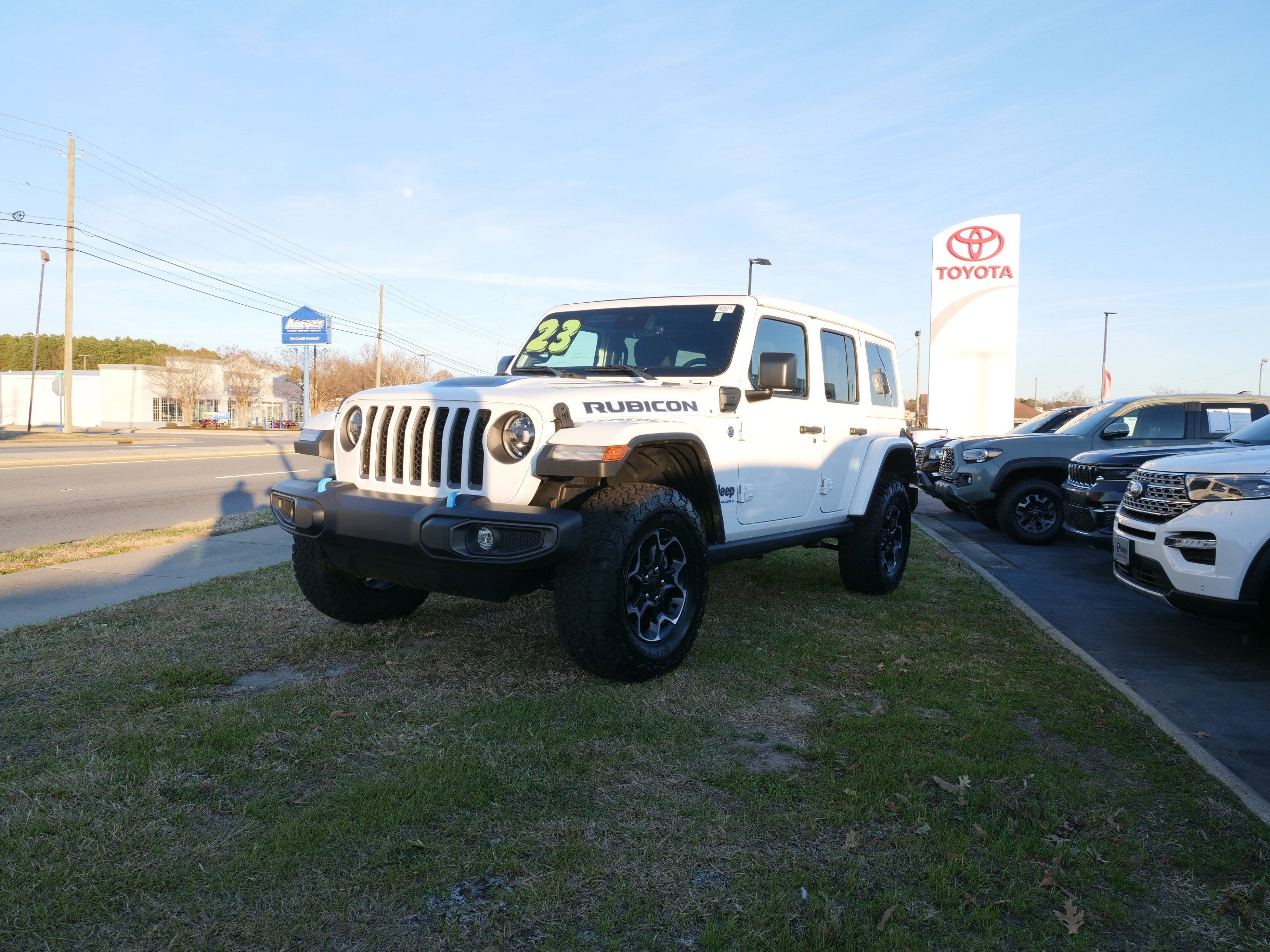 CARFAX One-Owner. Bright White Clearcoat 2023 Jeep Wrangler Rubicon 4xe 4WD 8-Speed Automatic 2.0L I4 DOHC 2.0L I4 DOHC, ABS brakes, Alloy wheels, Compass, Electronic Stability Control, Front dual zone A/C, Heated door mirrors, Illuminated entry, Low tire pressure warning, Navigation System, ParkView Rear Back-Up Camera, Passenger door bin, Remote keyless entry, Traction control, 4-Wheel Disc Brakes, 4.10 Rear Axle Ratio, 9 Speakers, Air Conditioning, AM/FM radio: SiriusXM, Apple CarPlay/Android Auto, Auto-dimming Rear-View mirror, Automatic temperature control, Brake assist, Delay-off headlights, Driver door bin, Driver vanity mirror, Dual front impact airbags, Dual front side impact airbags, Emergency communication system: SiriusXM Guardian, Front anti-roll bar, Front Bucket Seats, Front Center Armrest w/Storage, Front fog lights, Front reading lights, Fully automatic headlights, Garage door transmitter, Integrated roll-over protection, Occupant sensing airbag, Outside temperature display, Panic alarm, Passenger vanity mirror, Performance Suspension, Power door mirrors, Power steering, Power windows, Premium Cloth Low-Back Bucket Seats, Radio data system, Radio: Uconnect 4C Nav w/8.4 Display, Rear anti-roll bar, Rear reading lights, Security system, Speed control, Split folding rear seat, Steering wheel mounted audio controls, Tachometer, Telescoping steering wheel, Tilt steering wheel, Trip computer, Variably intermittent wipers, Voltmeter, and Wheels: 17 x 7.5 Machined w/Black Pockets.